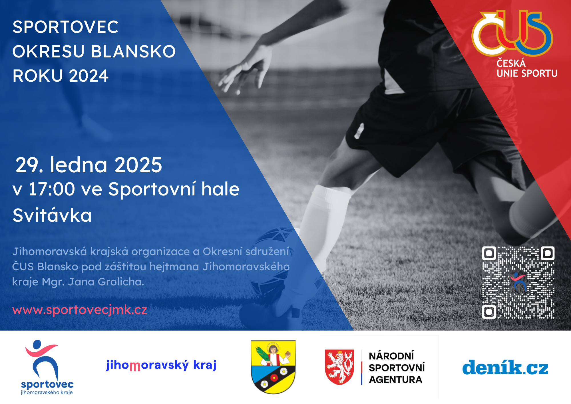 Slavnostní vyhlášení ankety Sportovec roku okresu Brno-venkov se uskuteční 29.1.2025 ve Sportovní hale Svitávka